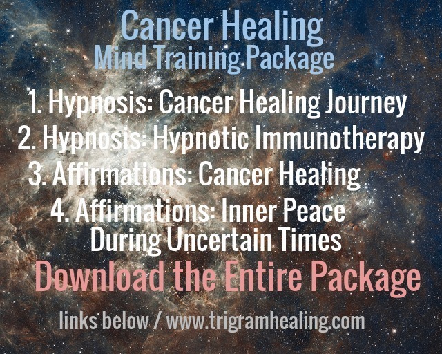 This package include 4 complete sessions plus a bonus "most powerful healing mantra." Train your mind to defeat cancer. Use your mind to restore your health.